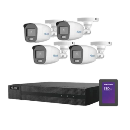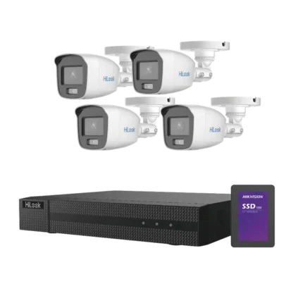 Kit TurboHD 1080p + SSD 500 GB / DVR 4 Canales / 4 Cámaras Bala ColorVu con Micrófono Integrado / Fuente de Poder / Accesorios de Instalación