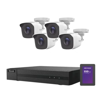 KIT TurboHD 1080p + SSD de 500 GB / DVR 4 canales / 4 Cámaras Bala de Metal / Fuente de Poder / Accesorios de Instalación