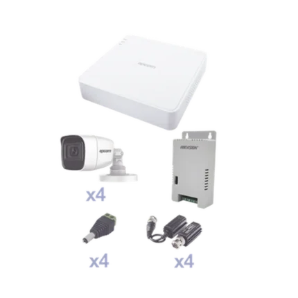 KIT TurboHD con Audio 1080p / DVR 4 Canales / 4 Cámaras Bala (exterior 2.8 mm) / Transceptores / Conectores / Fuente de Poder / AUDIO POR COAXITRON