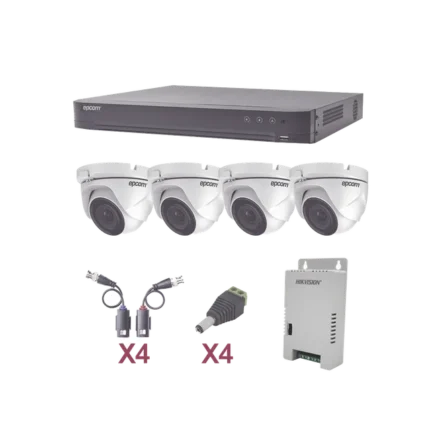 KIT TurboHD con Audio 1080p / DVR 4 Canales / 4 Cámaras Domo (exterior 2.8 mm) / Transceptores / Conectores / Fuente de Poder / AUDIO POR COAXITRON