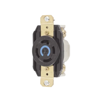 Receptáculo de Media Vuelta Industrial para Empotrar/ 20A 250V/ 2 Polos 3 Hilos/ NEMA L6-20R / Color Negro.