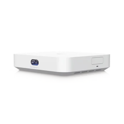 UniFi Cloud Gateway MAX, Router con todos los servicios UniFi, administra hasta 30 dispositivos UniFi y 300 clientes. 1 pto WAN 2.5G, 4 pts LAN 1G (uno configurable como WAN), seguridad IDS/IPS, VPN, bloqueo de apps/URLs, 512 GB memoria interna
