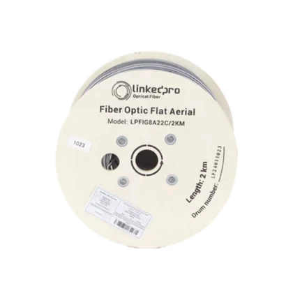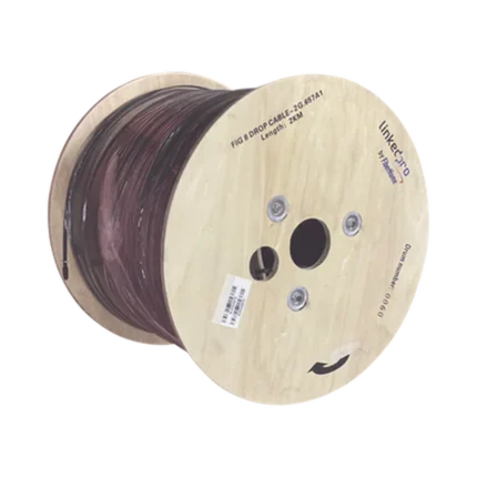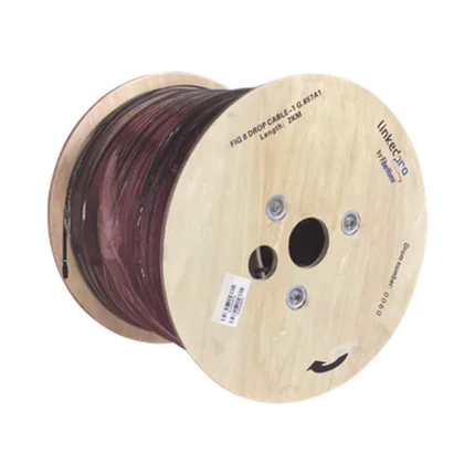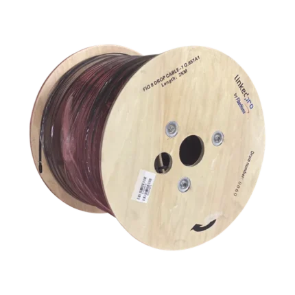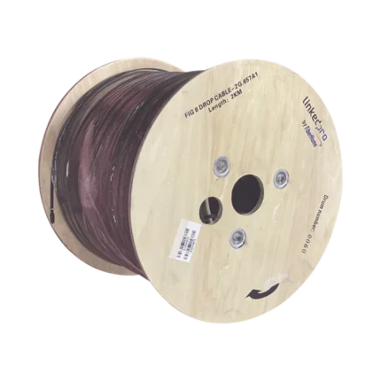 Carrete de 2 km de Fibra Óptica Aérea Mini Figura 8 G.657A2 tipo Drop Plana, Monomodo de 2 Hilos (bifibra), Color Negro, (No Soporta Conectores Mecánicos)