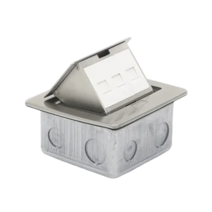 Mini caja de piso rectangular para datos y conectores tipo Keystone, Color y material en acero inoxidable (3 puertos) (11000-21202)