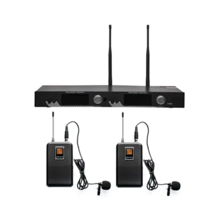 Kit de Microfonía inalámbrico | 2 Micrófonos de Lavalier | Receptor UHF | Pantalla LCD | 200 Canales | Gran cobertura