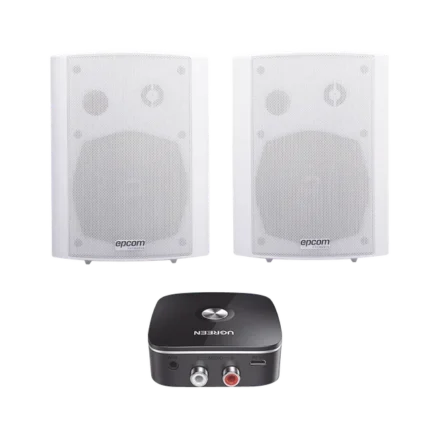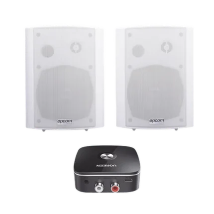 Kit Altavoces + Modulo Receptor BT | Montaje en Pared | 2x20W RMS | Material ABS y Reja Metálica | Bracket de Metal | Color Blanco