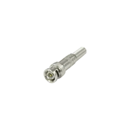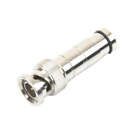 Conector BNC Macho en 75 Ohm, de Compresión Axial para Cable Coaxial RG-59/U, Níquel/ Oro/ Politetrafluoroetileno.