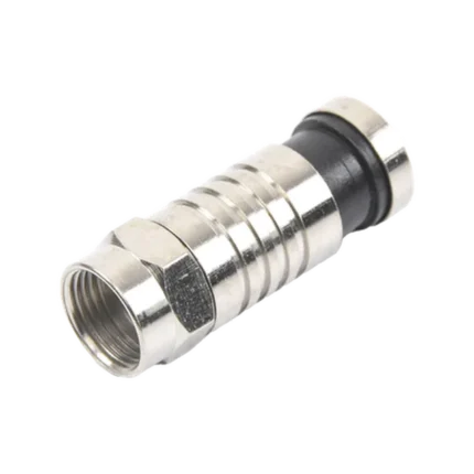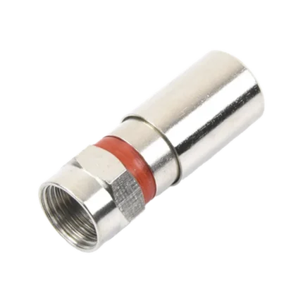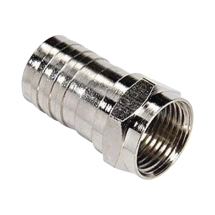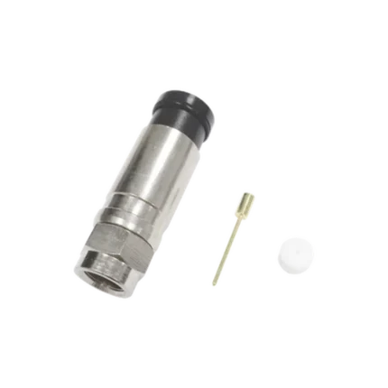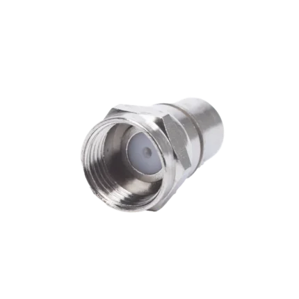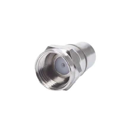 Conector F Macho de Compresión, Metálico para cable RG-6, Cuerpo de Bronce Niquelado.