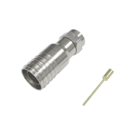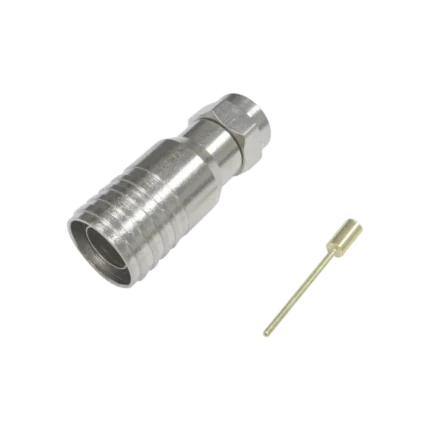 Conector F Macho en 75 Ohm, Plegable para Instalar en Cables Coaxiales RG-11, Cuerpo de Bronce-Niquelado/ Teflón.