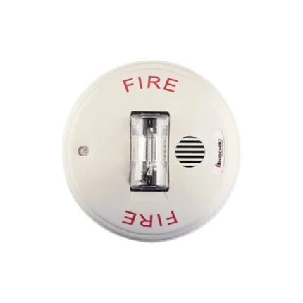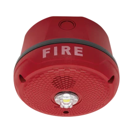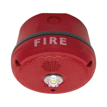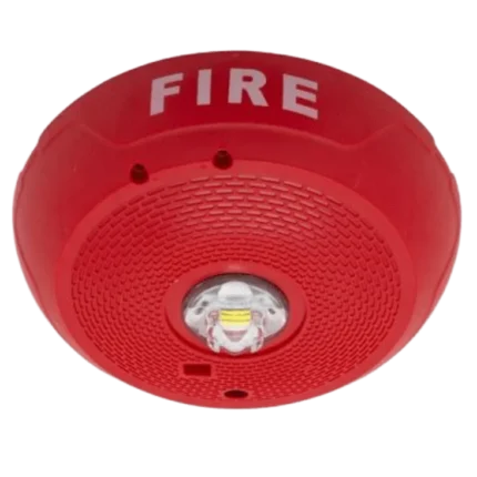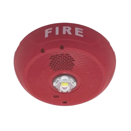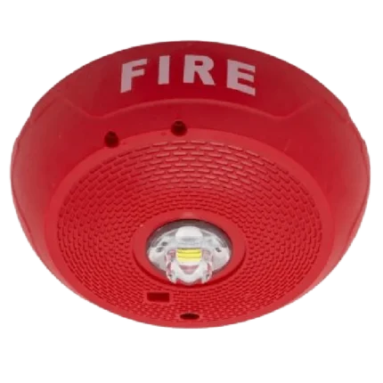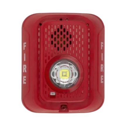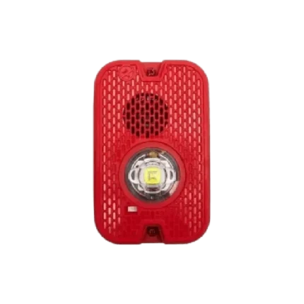 Sirena con Lámpara LED Estroboscópica / a 2 Hilos / Montaje en Pared / 12 o 24 Vcd / Configuración Estroboscópica Seleccionable / Texto en Inglés / Color Rojo / Uso exterior