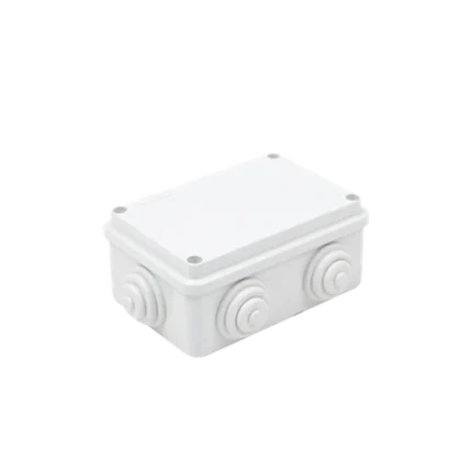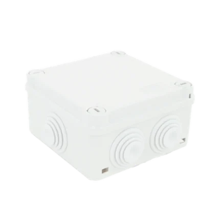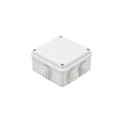 Caja de derivación de PVC Auto-extinguible con 6 entradas, tapa atornillada, 100x100x50 MM, (Medidas internas, mayor área permisible para e cable, Para exterior (IP55)