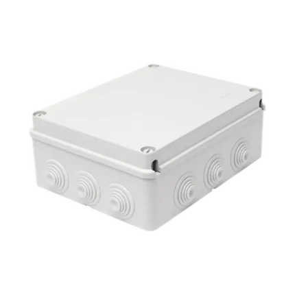 Caja de derivación de PVC Auto-extinguible con 12 entradas, tapa atornillada, 300x220x120 MM, Para Exterior (IP55)