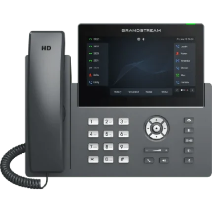 Teléfono IP Wi-Fi, Grado Operador, 12 líneas SIP con 6 cuentas, pantalla táctil 7″, puertos Gigabit, Bluetooth, PoE, codec Opus, IPV4/IPV6 con gestión en la nube GDMS