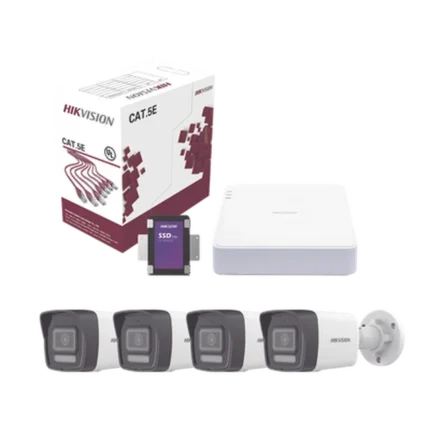 Kit IP 4 Megapixel / NVR de 4 Canales con 4 Puertos PoE / 4 Cámaras IP Bala Dual Light (IR + Luz Blanca) con Microfono Integrado y ACUSENSE Lite para Exterior/ Bobina de Cable de 100 mts / SSD de 1 TB