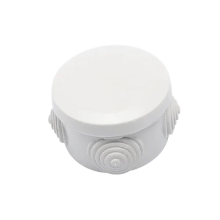 Caja Derivación-Conexión de Plástico Circular con 4 Glándulas de Goma (70 diámetro X 48 alto mm). Para Instalaciones Comerciales, Residenciales e Industriales. Cerrado a Presión.