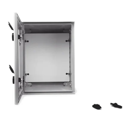 Gabinete de Acero IP66 Uso en Intemperie (600 x 600 x 300 mm) con Placa Trasera Interior Metálica y Compuerta Inferior Atornillable (Incluye Chapa y Llave T).