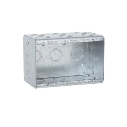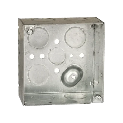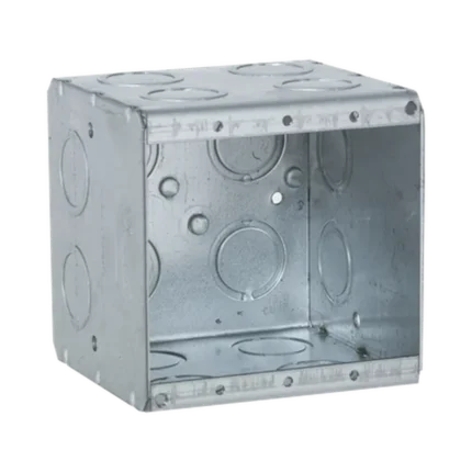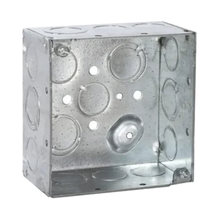 Caja Cuadrada Galvanizada de 4″ x 4″/ Profundidad de 2 1/8″ /8 Entradas 1″, 3 Entradas 1/2″ y 2 Entradas 3/4″/ Soldada.