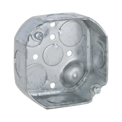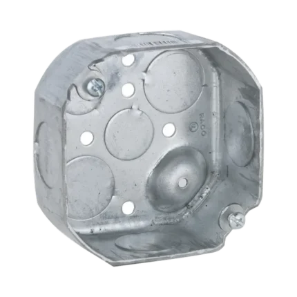 Caja Octagonal de 4″ / Profundidad 1 1/2″ / 4 Entradas de 3/4″ y 4 Entradas de 1/2″ / Troquelada.