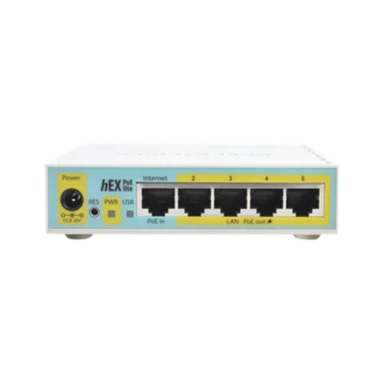 (hEX PoE LITE) RouterBoard, 5 Puertos Fast Ethernet, 4 con PoE Pasivo, 1 Puerto USB
