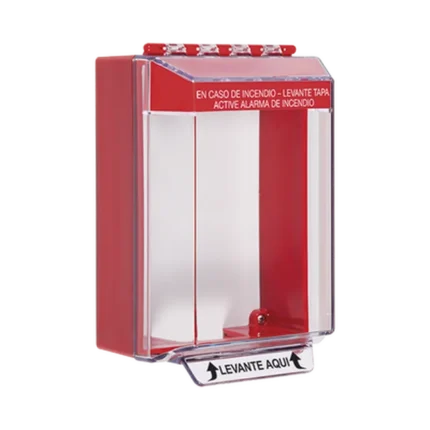 Cubierta Universal Transparente, de Bajo Perfil, con Espaciador, Texto de Incendio en Español, Notificación Audible y Visible