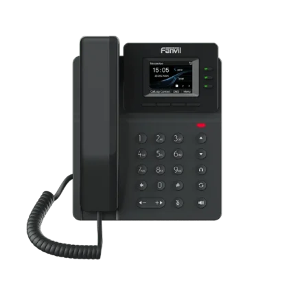 Teléfono IP empresarial para 2 lineas SIP con pantalla LCD, Códec Opus, conferencia de 3 vías, PoE.