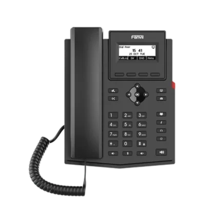Teléfono IP empresarial para 2 lineas SIP con pantalla LCD, Puertos Gigabit, Códec Opus, conferencia de 3 vías, PoE.