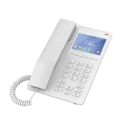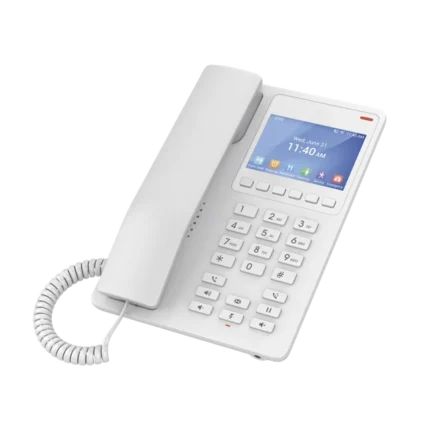 Teléfono IP Hotelero con pantalla LCD a color, 2 líneas SIP con 2 cuentas, codec Opus, IPV4/IPV6, color blanco, con gestión en la nube GDMS