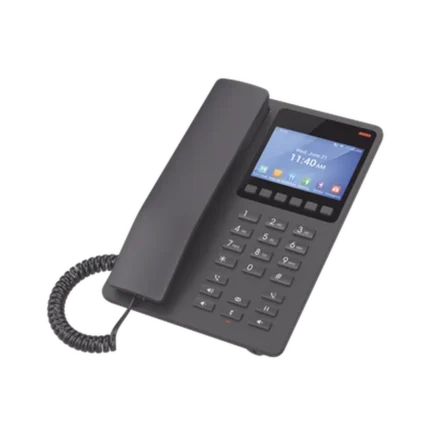 Teléfono IP Hotelero con pantalla LCD a color, 2 líneas SIP con 2 cuentas, codec Opus, IPV4/IPV6, color negro, con gestión en la nube GDMS
