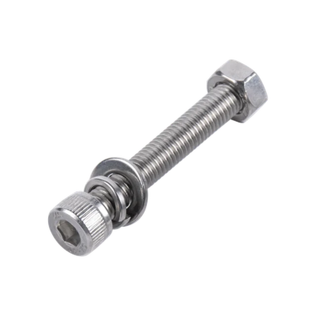 1 Tornillo Allen Milimétrico de Acero Inoxidable M8-1.25 x 25 / 1 Pza. /Con 1 Tuerca, 1 Arandela de Presión y 1 Plana / Para Montajes de Módulos Foto Voltaicos .