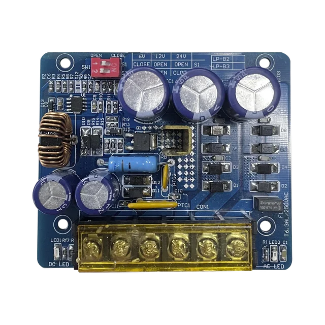 - Salida seleccionable de 6 o 12 o 24 Vcc