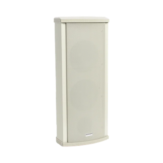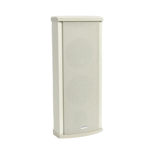Altavoz para exterior de alta potencia tipo columna, estructura completamente metálica. Transformador de 70V y 100V incorporado que reduce las perdidas de línea y permite llevar el sonido a una mayor distancia. Nivel impermeable IP66, con materiales de la más alta calidad los cuales aseguran la durabilidad de esta bocina; Ideal para cubrir proyectos como campus universitarios, escuelas, estacionamientos, parques o cualquier otro lugar al aire libre que requiera potencia e inteligibilidad en el mensaje.