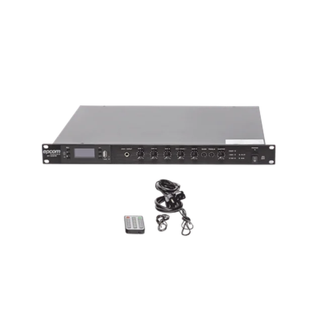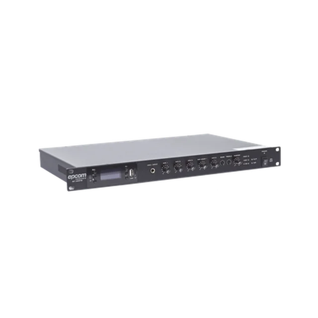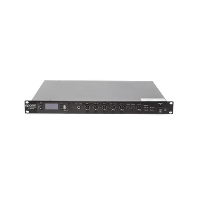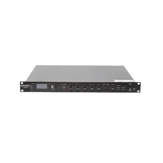 Mezclador / Amplificador de alta eficiencia para lugares donde se requiere reproducción de música de fondo simple, con un diseño compacto y sofisticado.