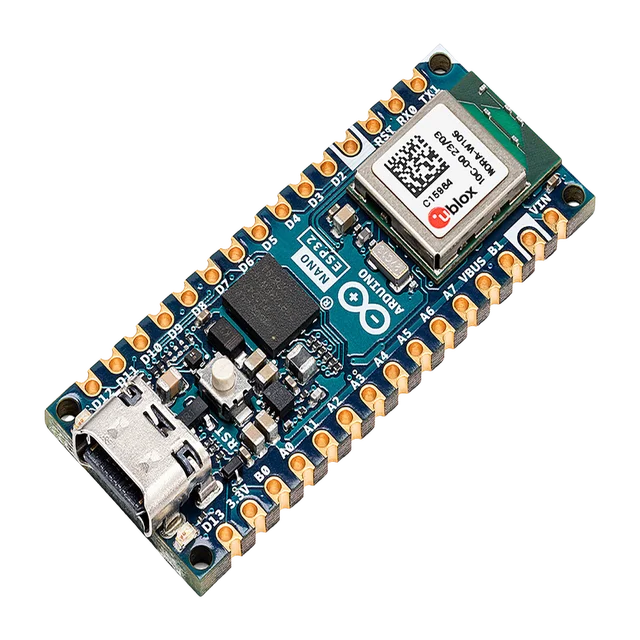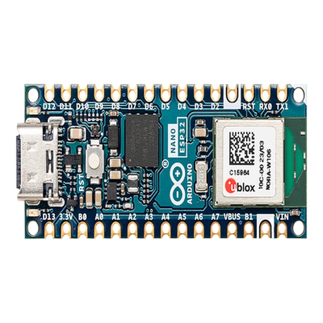 El Arduino Nano ESP32 presenta el NORA-W106, un módulo con un chip ESP32-S3 en su interior. Este módulo admite Wi-Fi® y Bluetooth® (5.0 y superior), lo que lo convierte en un dispositivo ideal para el desarrollo de IoT. El popular factor de forma Nano también lo hace compatible con muchos accesorios de hardware.