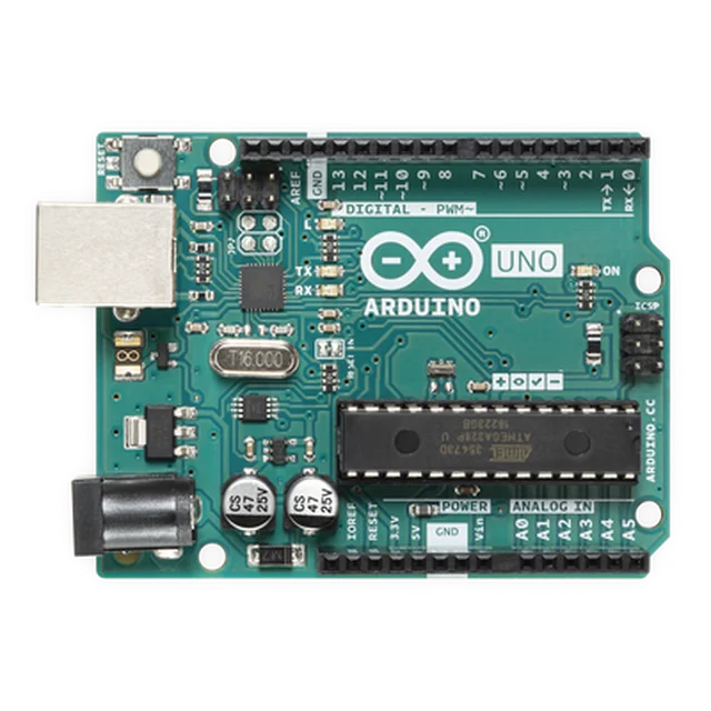Arduino UNO es una placa microcontroladora basada en Atmega328P . Dispone de 14 pines de entrada/salida digitales (de los cuales 6 se pueden utilizar como salidas PWM), 6 entradas analógicas, un resonador cerámico de 16 MHz, una conexión USB, un jack de alimentación, un cabezal ICSP y un botón de reinicio. Contiene todo lo necesario para soportar el microcontrolador; simplemente conéctelo a una computadora con un cable USB o enciéndalo con un adaptador de CA a CC o una batería para comenzar. Puedes jugar con tu UNO sin preocuparte demasiado por hacer algo mal; en el peor de los casos, puedes reemplazar el chip por unos pocos dólares y empezar de nuevo.