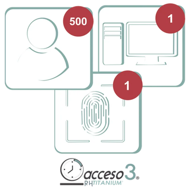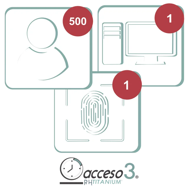 [BAJO PEDIDO] Licencia de 3 aƱos para software Acceso3 TITANIUM / 500 Empleados / 1 reloj / 1 PC / Compatible con SISTEMAS DE NOMINA