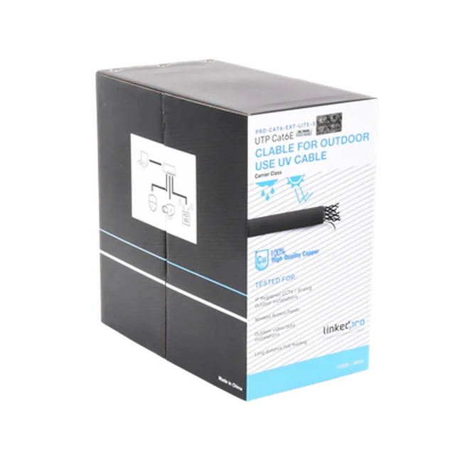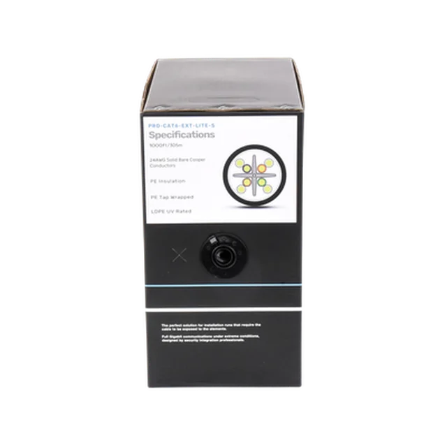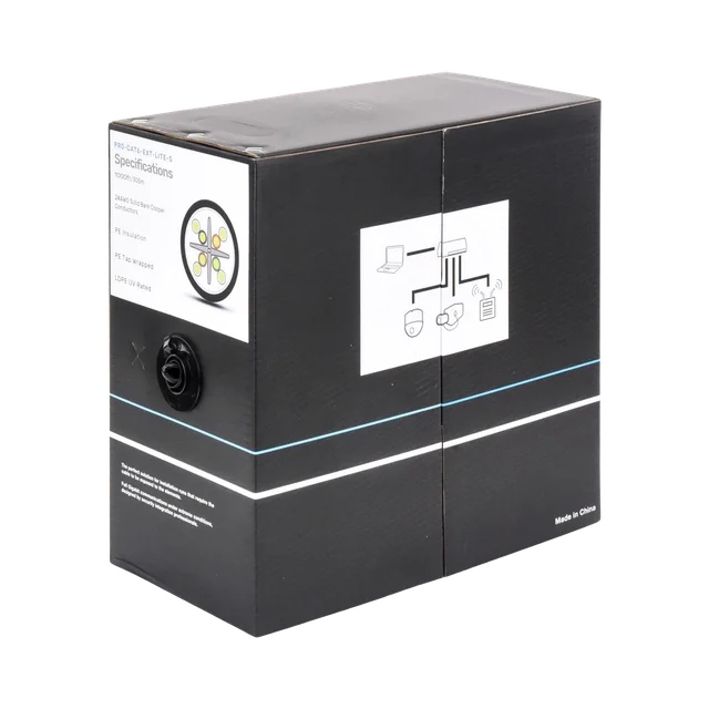 Bobina de cable 305 Metros Cat6, 24 AWG, Climas EXTREMOS, Color negro, sin blindar, para intemperie