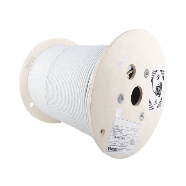 El cable de categoría 7 de Panduit cumple con el estándar de componentes IEC 61156-5 Clase F. Los conductores deben tienen una construcción de 23 AWG con aislamiento de PE de piel expandida. Los conductores de cobre estan trenzados en pares, cada uno cubierto por un blindaje de aluminio dentro de un blindaje trenzado general y una chaqueta con bajo contenido de humo y cero halógenos (LSZH).