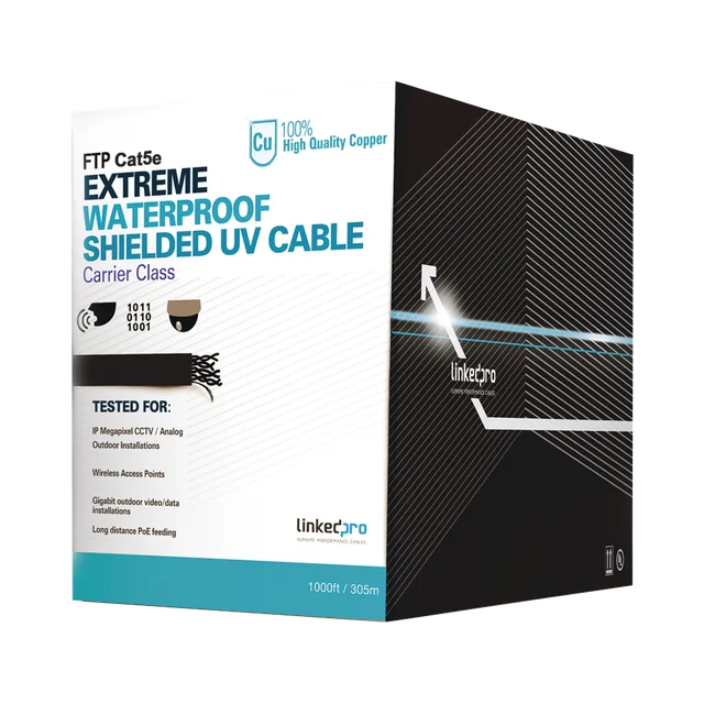 Bobina de cable de 305 m, Cat5e, color negro, sin blindar, para aplicaciones de video vigilancia, redes de datos. Uso en intemperie
