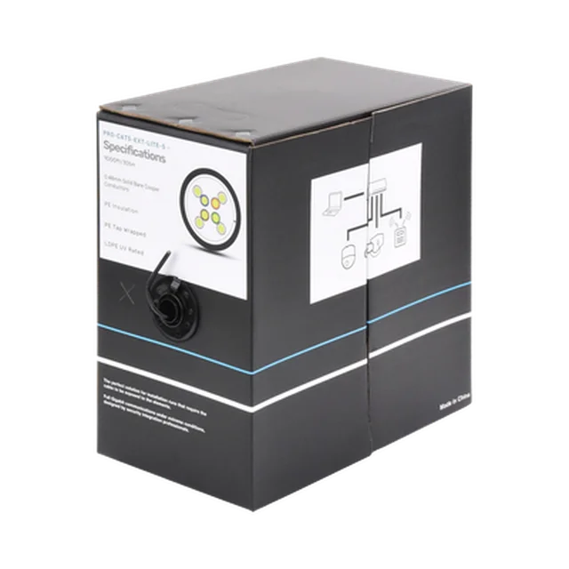 Bobina de cable de 305 m, Cat5e, color negro, sin blindar, para aplicaciones de videovigilancia, redes de datos. Uso en intemperie