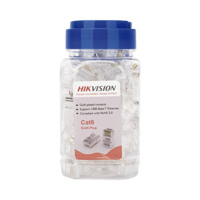 Bote con 100 Piezas de Plug Modular RJ45 / Cat 6 / Chapado en Oro a 30 Micras / Sin Blindaje / Facil Instalación / Uso Interior / Soporta Norma TIA-568B / Cumple con RoHS 2.0