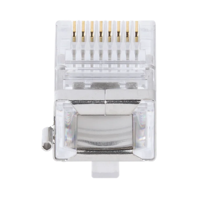 Bote con 100 Piezas de Plug Modular RJ45 Cat5e blindado, chapado de oro a 30 micras para durabilidad extrema CON PIN DE TIERRA