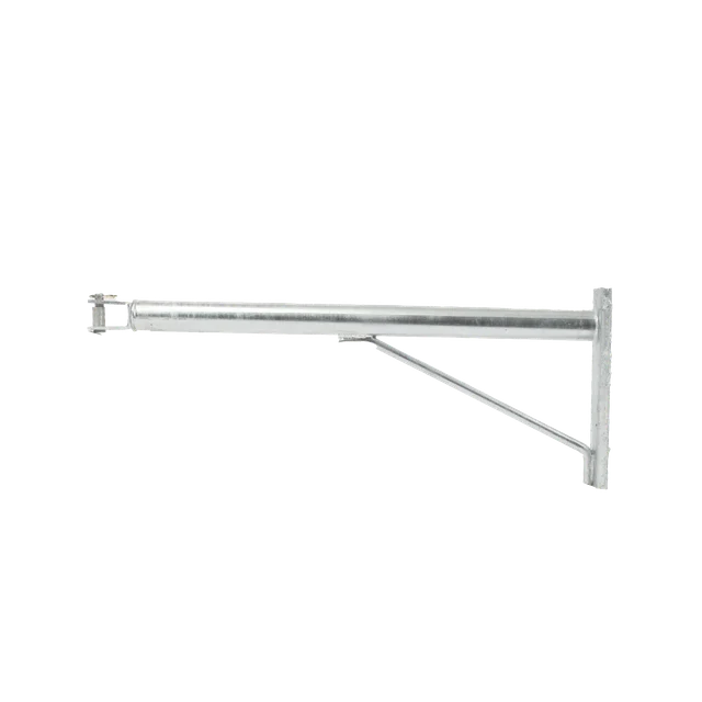 El brazo de extension nos ayuda a sujetar los cables autosoportados de fibra optica, ademas nos permite continuar con la trayectria de fibra optica cuando encontramos algun obstaculo, esta fabricado en acero galvanizado por inmersion en caliente para una mayor resistencia a la intemperie.