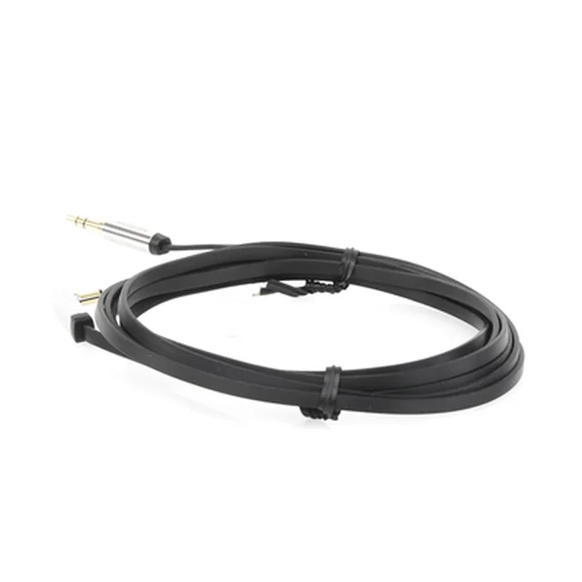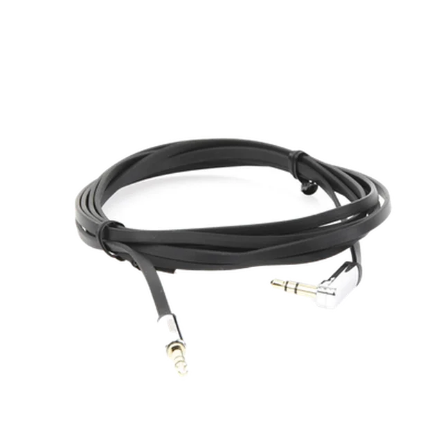 Cable Auxiliar Plano 2 Metros / Conector 3.5mm a 3.5mm / Macho-Macho / Recto a Angulo / Ángulo de 90° en una de sus Puntas / Color Negro