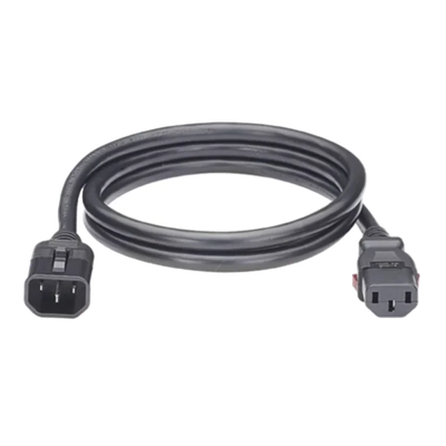 Cable de Alimentación Eléctrica Con Bloqueo de Seguridad, de IEC C14 a IEC C13, 1.8 Metros de Largo, Color Negro, 1 Pieza