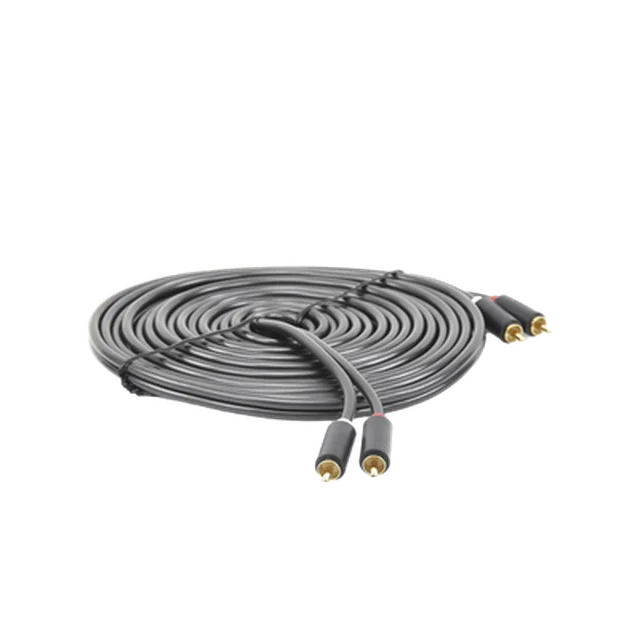 Cable de Audio 2 RCA Macho a 2 RCA Macho / 5 Metros / Color Negro / Alta Calidad / Anillos de goma para asegurar un agarre firme al instalar o quitar el cable