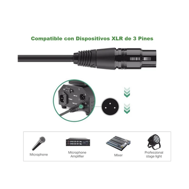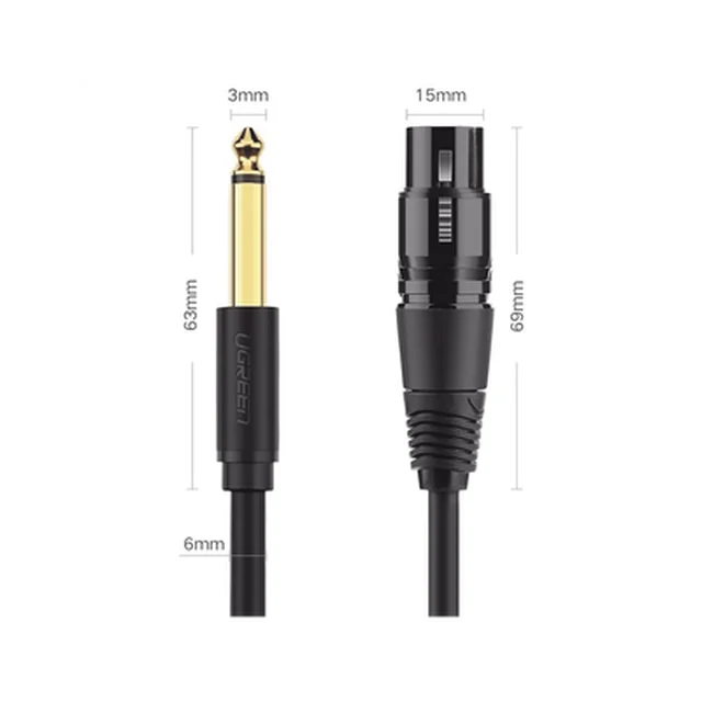 Cable para Micrófono Plug 6.35 mm (1/4 Inch) Macho a XLR Canon Hembra / Núcleo de Cobre / 5 Metros / Alta Calidad / Color Negro