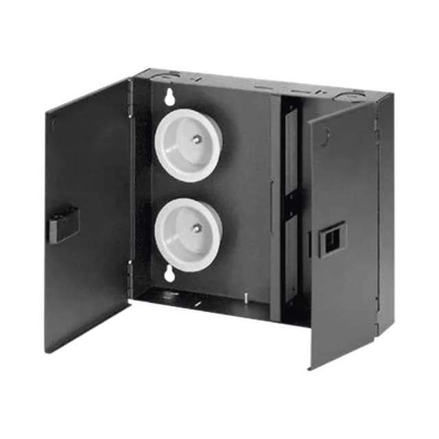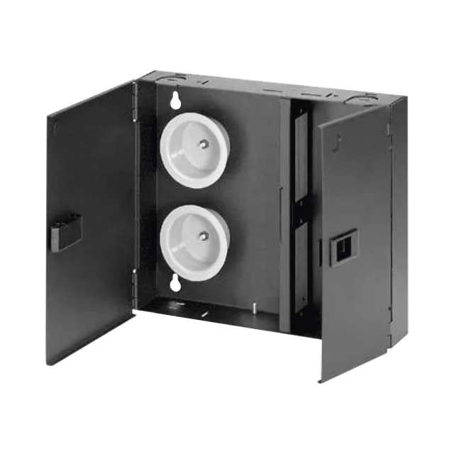 Caja de Conexión de Fibra Óptica, Para Montaje en Pared, Acepta 2 Placas FAP o FMP, Hasta 48 Fibras, Color Negro