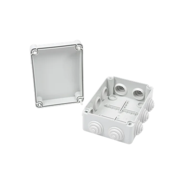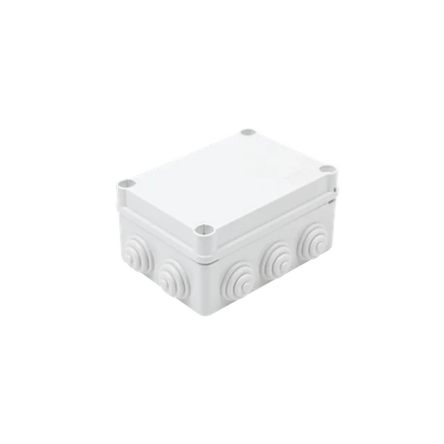 Caja de derivación de PVC Auto-Extinguible con 10 entradas, tapa y tornillo de media vuelta de 1/4″, 150x110x70 mm (5.9 x 4.3 x 2.7 in), Para Exterior (IP55)