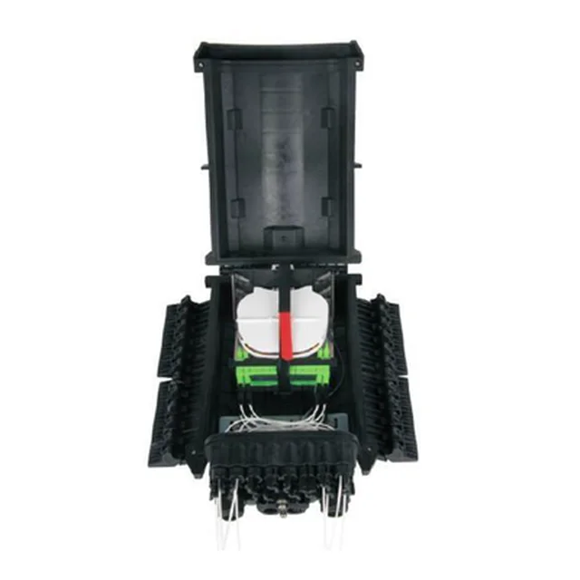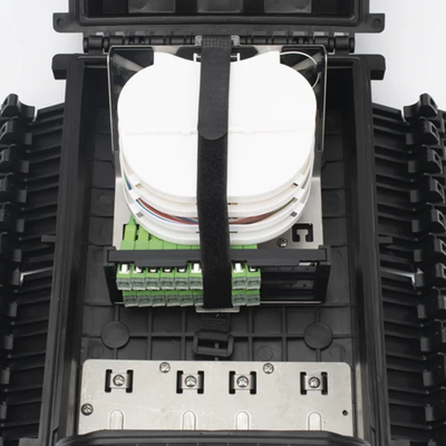 Caja de Distribución de Fibra Óptica para 24 Empalmes con 16 Acopladores SC/APC. Enterrado Directo, IP68, Splitter 1×8 Incluido con Conectores SC/APC