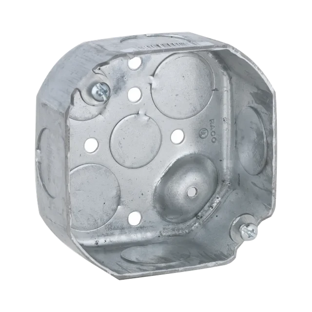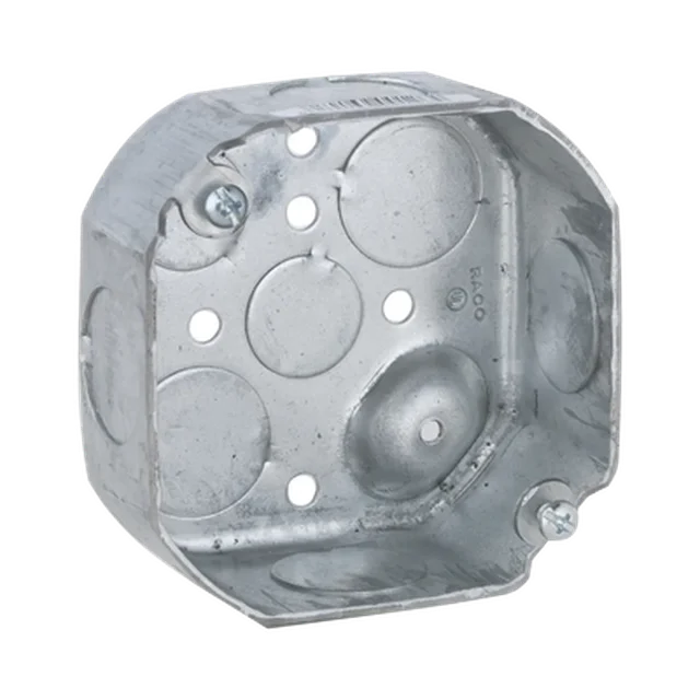 Caja Octagonal de 4″ / Profundidad 1 1/2″ / 4 Entradas de 3/4″ y 4 Entradas de 1/2″ / Troquelada.